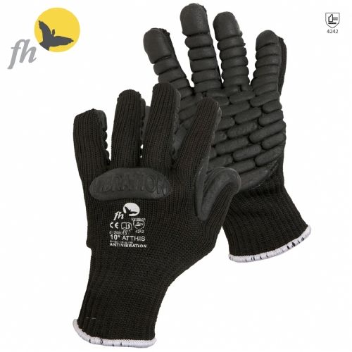 Mănuşi certificate anti–vibraţii, amestec de bumbac şi poliester, cu nitril anti–vibraţii, pernuţe in palmă. EN 10819