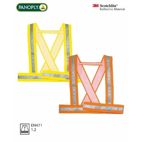 Centiron. Inchidere cu banda velcro. Latime centura şi bretele : 7,5 cm. Inalta vizibilitate : Clasa 1 - Culoare argintie - Benzi montate pe umeri.