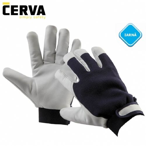 Mănuşi termoizolate ,din piele fină de capră in palmă, dosul palmei din ţesătură de bumbac albastră, manşete cu bandă Velcro.