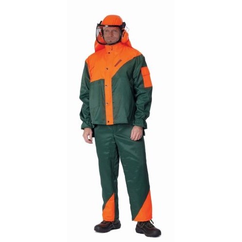 Îmbrăcăminte de protecţie împotriva tăierii cu fierăstrău mecanic. Aceasta este fabricată în conformitate cu EN 340:2004 şi EN381‑5:1997, zonă de protecţie A – clasă de rezistenţă 1‑ CE+FPA.