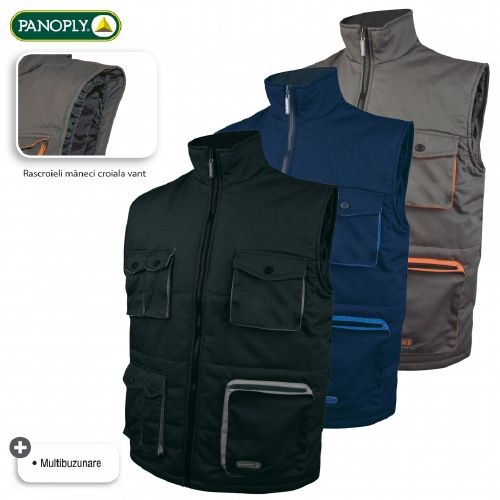 Vesta calduroasa multibuzunare. Partea de jos ajustabila prin cordon elastic. 7 buzunare.