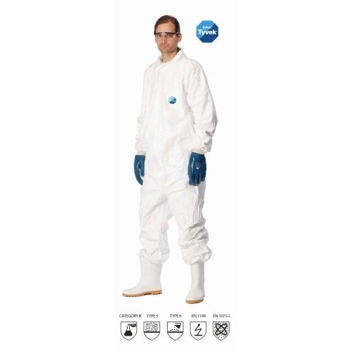 Combinezon cu guler Tyvek Industry (DuPont), antistatic, impermeabil, rezistent la soluţii chimice, azbest şi praf