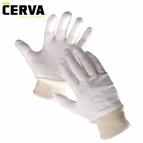 Mănuşi cusute din tricot interlock de bumbac fin,nealbit, cu manşetă elastică.